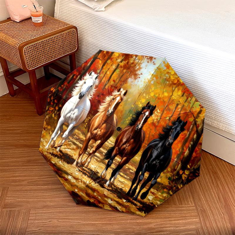 1 PC Automatic Folding Umbrella - Maple Leaves, Puppies, Horses, Kittens Pattern, Portable & Foldable Design with 8 Ribs, Christmas Birthday Gifts