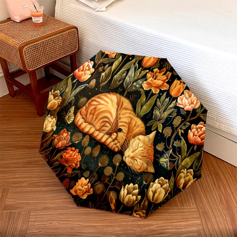 1 PC Automatic Folding Umbrella - Sleeping Cute Cat Pattern, Portable & Foldable Design with 8 Ribs, Christmas Birthday Gifts