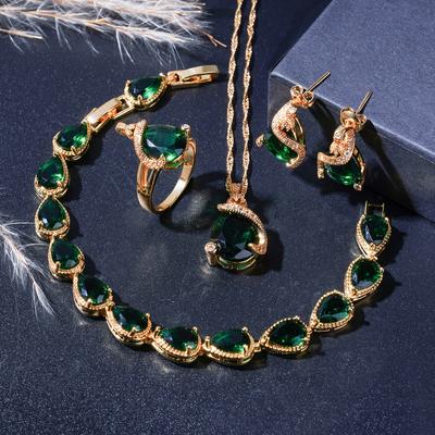 שרשרת תליון קריסטל מלאכותי זירקון צהוב עגילי טבעת סט תכשיטים