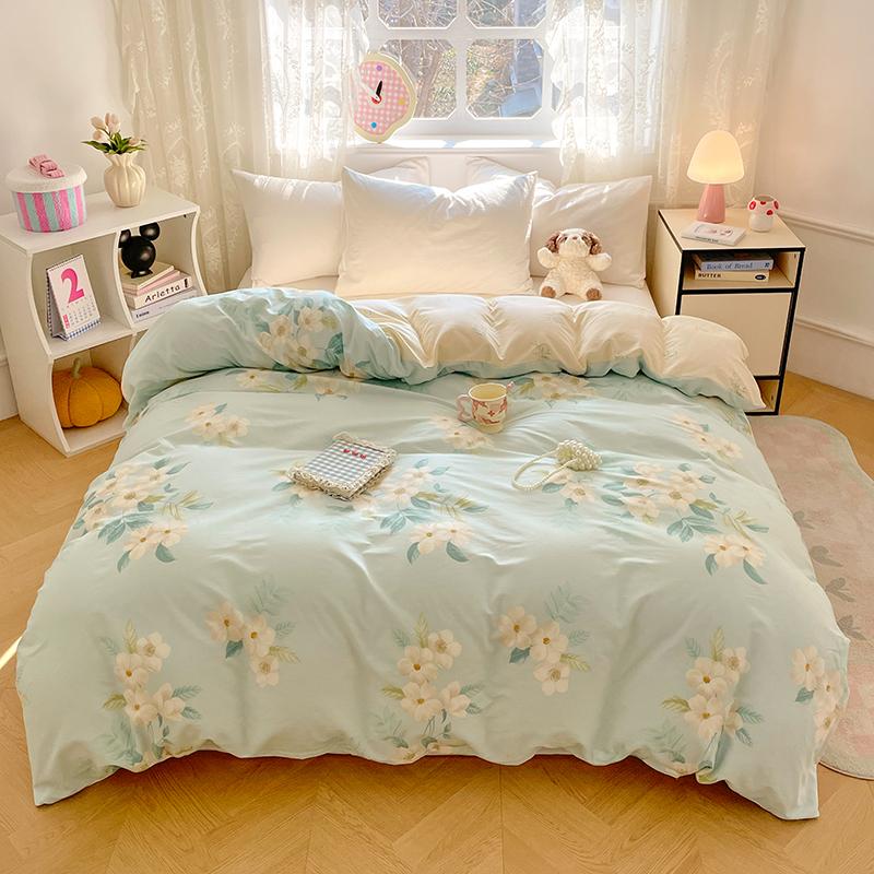 1pc 100% Cotton Floral Duvet Cover Soft Skin-Friendly King Size Comforter Cover with Zipper Spring Summer Breathable Quilt Cover