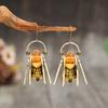 Vintage Metal Gold Color Carving Bee Earrings Creative Round Amber Color Stone Dangle Earrings for Women Jewelry