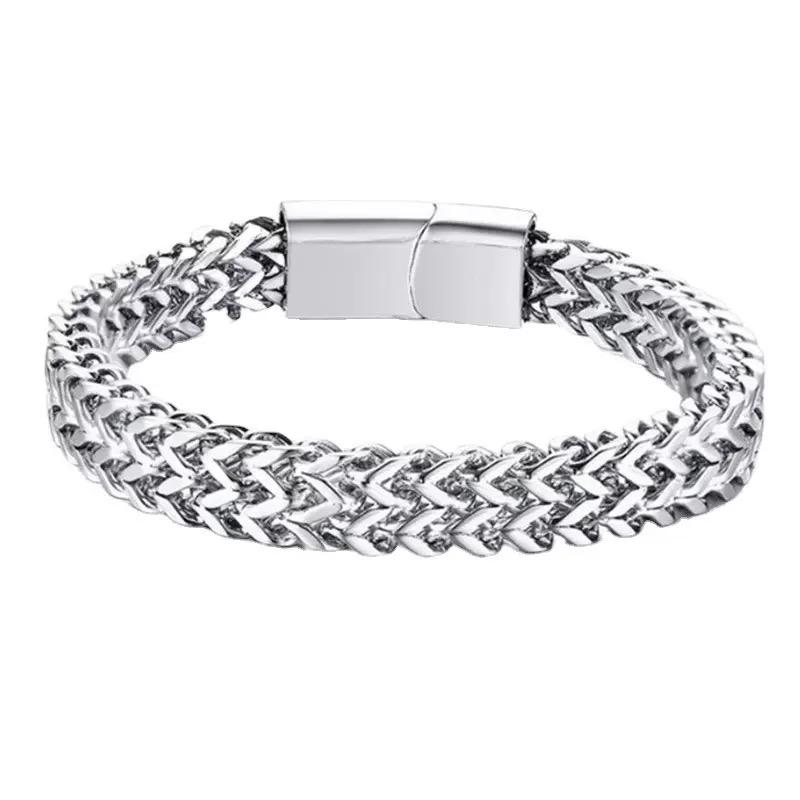 צמיד נירוסטה קלוע שורה כפולה קדמית ואחורית סגסוגת קשירה מגנטית אבזם תכשיטי קיל מודל חדש
