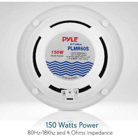 Pyle 6.5” Dual Marine Speakers - 2 Way Waterproof and Weather Resistant Outdoor Audio Stereo Sound System with 150 Watt Power, Polypropylene Cone