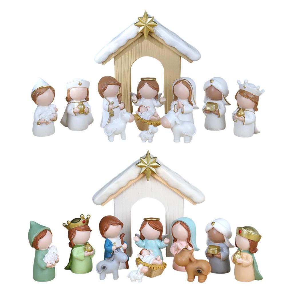 12Pcs Cartoon Holy Family Nativity Scene Set Holiday Decor Resin Craft