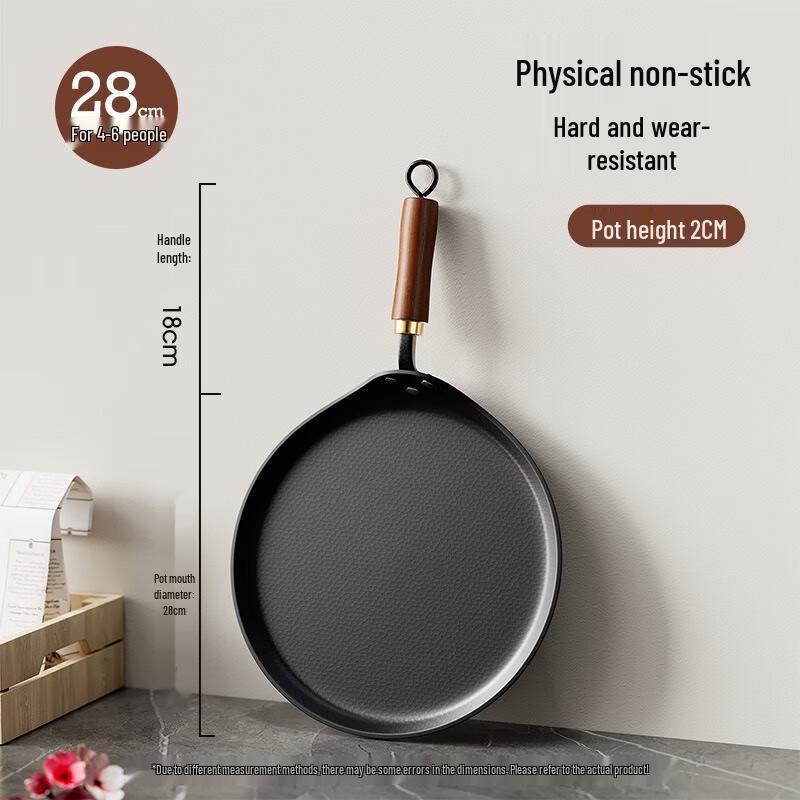 Experience superior cooking with the Wutuo 28cm Hand-Forged Iron Frying Pan. Crafted from fine iron, this uncoated, flat-bottom skillet offers exceptional durability and heat retention for perfect searing of steaks, delicious pancakes, and everyday meals. Designed for universal stove compatibility, its seasoned surface provides a natural non-stick cooking experience, promoting healthier cooking.