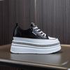 Women's Spring Fall White Sneakers Thick Bottom Muffin Inner Height Increase Rhinestone Decor Casual Sports Shoes