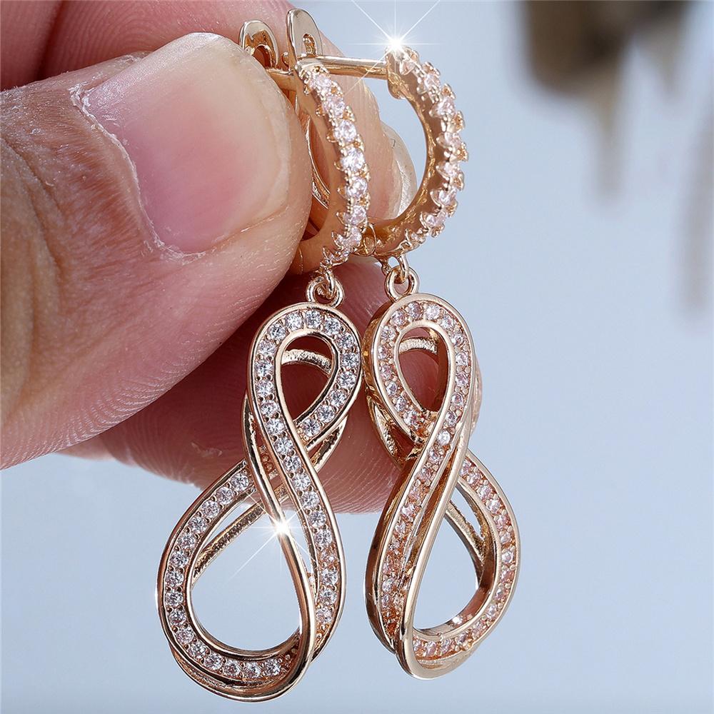 Charm Female Small White Round Zircon Infinity Hoop Earrings Vintage Gold Color Simple Wedding For Women