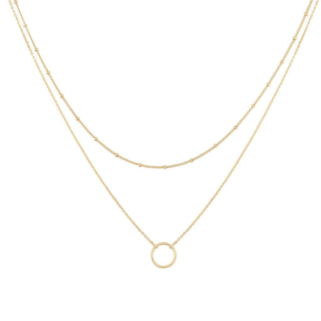 Stainless steel necklace for women Double necklace Vintage Bohemian round pendant necklace