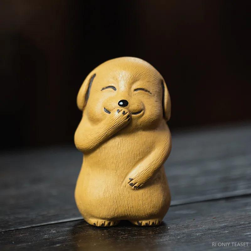ישינג חרס סגול חיית מחמד לתה גלגל המזלות הסיני פסל כלב קישוטים פסל ידני דמות תה יצירות ידניות קישוט למערכת תה בר מזל