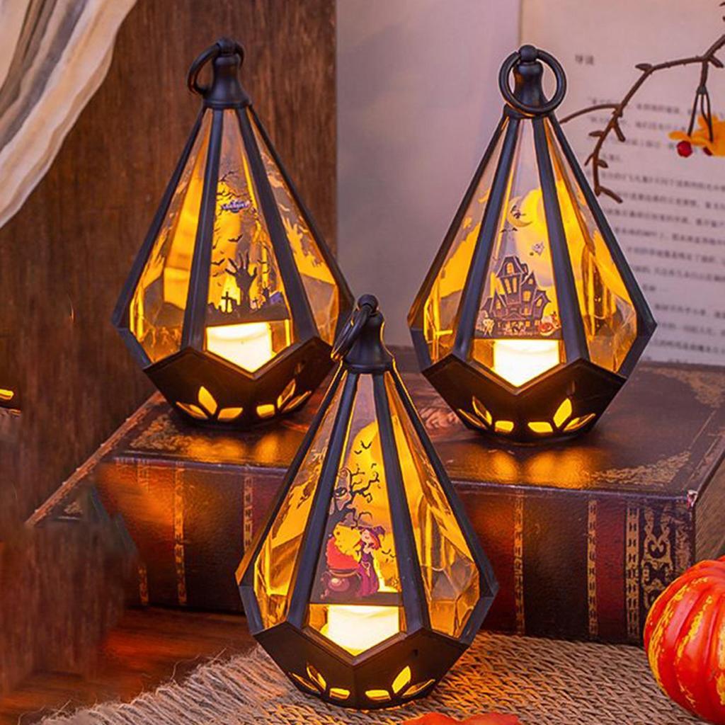 Halloween Lantern Lights Witch Pumpkin Castle Lantern Lamp Ornament Decorations Centerpieces For Yard Garden Camping Porch
