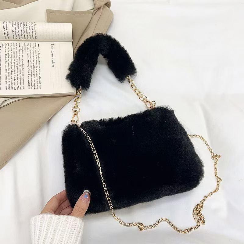 Korean Design Plush Chain Crossbody Handbag - Versatile & Stylish