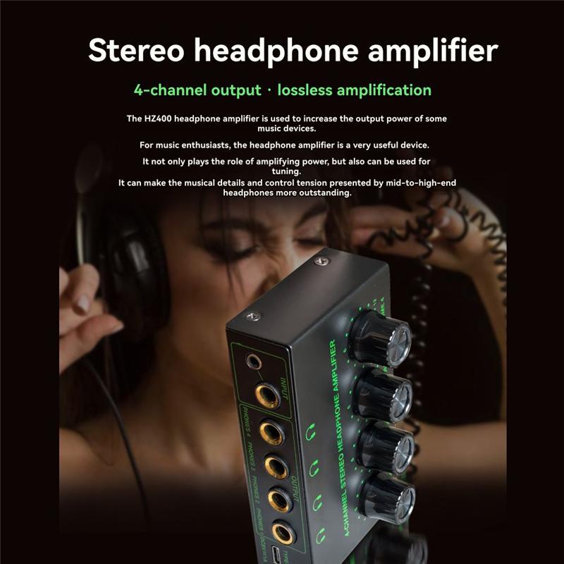 ABUO-4 Channel Low Noise Stereo Audio Amplifier Professional Headphone Amplifier For Sound Mixer PC Guitar