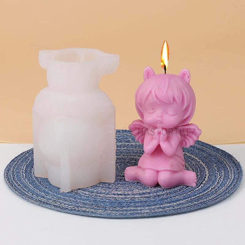 3D Prayer Angel Silicone Candle Mold Cute Sit-down Girl Statue Soapy Plaster Epoxy Making Kit DIY Chocolate Ice Cube Baking Tool