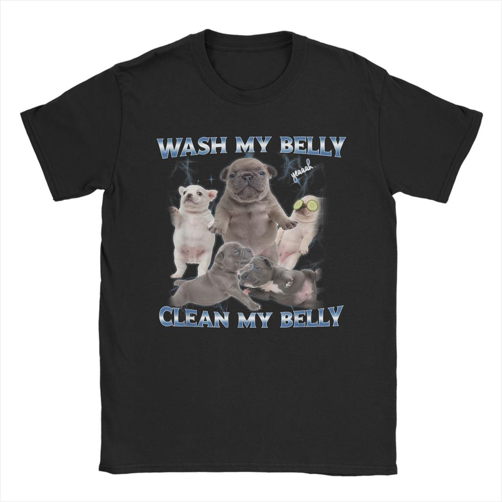 Pibble Dog Wash Clean My Belly Funny Meme T-Shirts Men Round Collar Pure Cotton T Shirt Short Sleeve Tees Plus Size Clothing