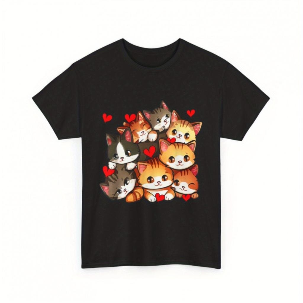 Cute Kitten Cluster Love Hearts Graphic Print Short Sleeve Crew Neck Cotton T-Shirt Casual Daily Tee