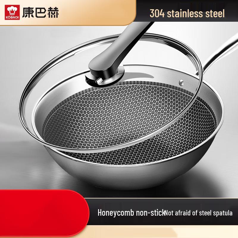 KOBACH 32cm 304 Stainless Steel Non-stick Honeycomb Wok
