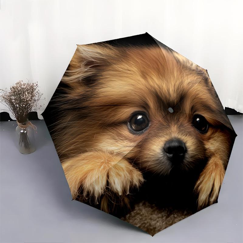 Dog on Black Background pattern, automatic folding umbrella, portable and foldable design, 8 ribs, a Christmas or birthday gift.