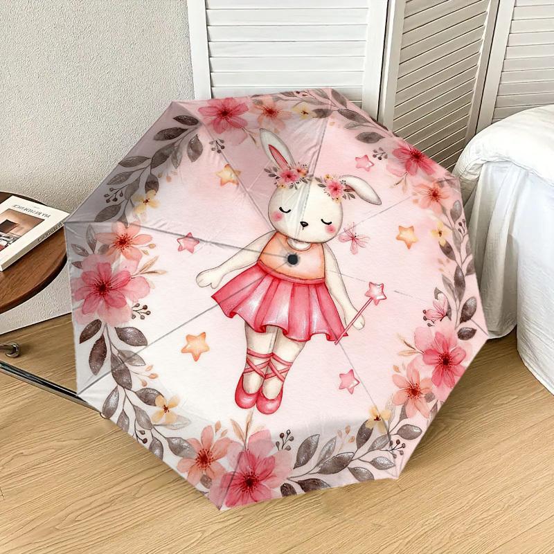 1pc rabbit ballerina Automatic Folding Umbrella, Heavy Duty 8 Rib Iron Frame, Suitable for Travel, Daily Use, Birthday, Decor Gift m0104033