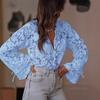 Fashion Sexy Hollow Out See Through Mesh Lace Shirt Sweet Blouse Loose Casual Slim Long Sleeve Crochet Elegant Tops