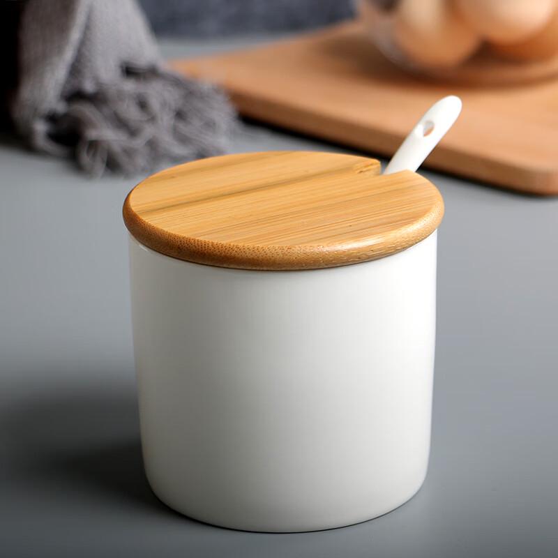 Thickened Ceramic Condiment Jar with Wooden Lid