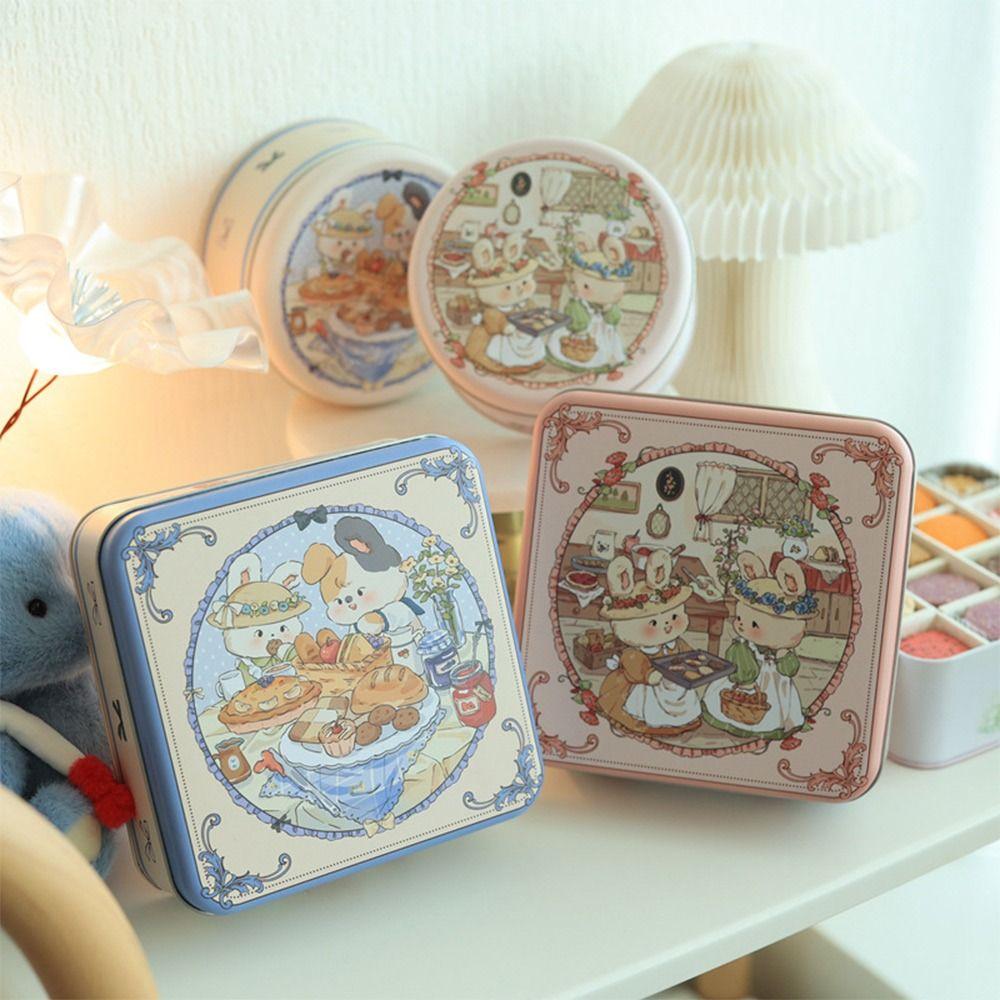 High Quality Cartoon Rabbit Iron Box Multicolor 17*17*6cm Cake Packaging Box Square with Lid Cookie Tin Money Contain