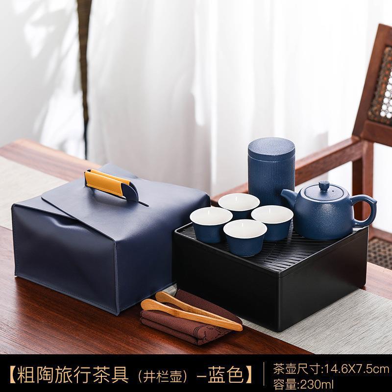Coarse Pottery Travel Kung Fu Set Ceramic One Pot Four Cups Tray Tea Canister Portable Business Gift