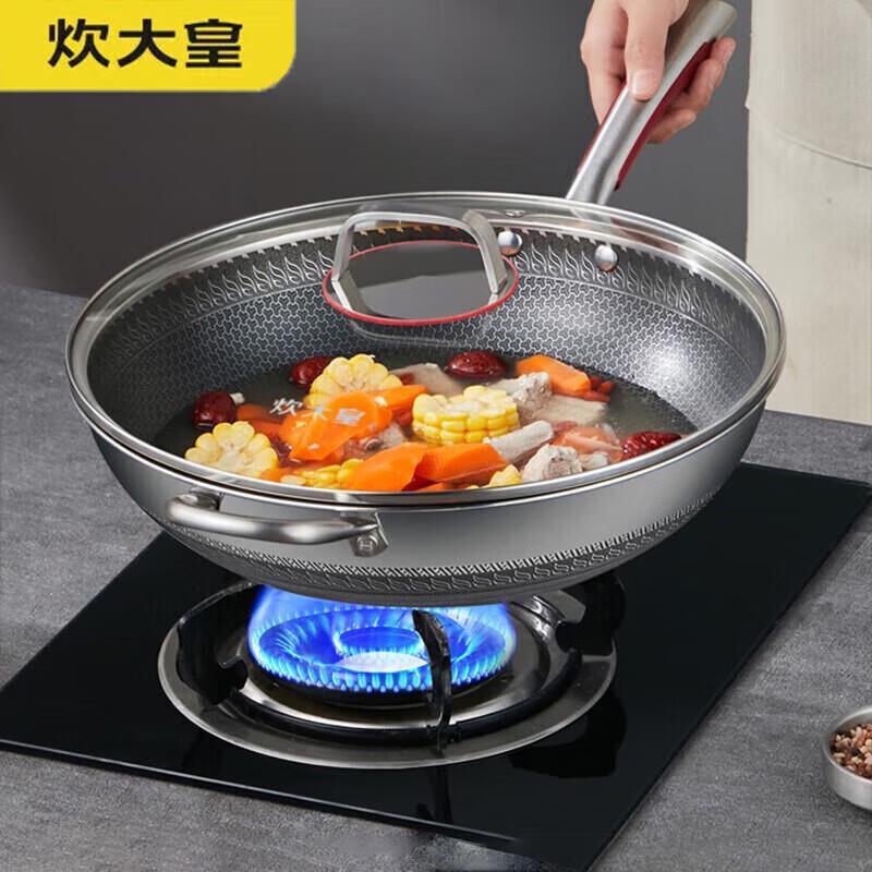 Experience superior cooking with this premium 34cm wok, crafted from durable 316L stainless steel for excellent rust resistance and longevity. It features an innovative double-sided screen honeycomb surface, ensuring even heat distribution and a non-stick cooking experience. The integrated 'fire red dot' acts as a convenient heat indicator, helping you cook at optimal temperatures. Designed for versatility, this wok is compatible with both gas and flat induction cooktops, making it a perfect addition to any modern kitchen.