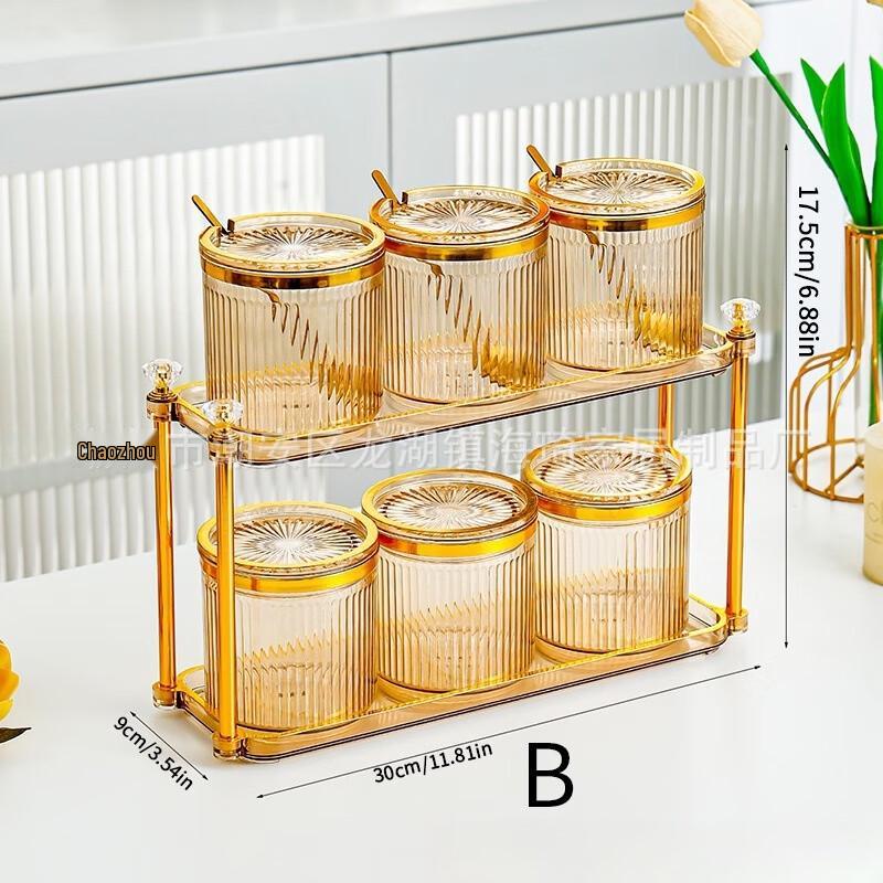 Kitchen Seasoning Jars Storage Set with Gold Rim