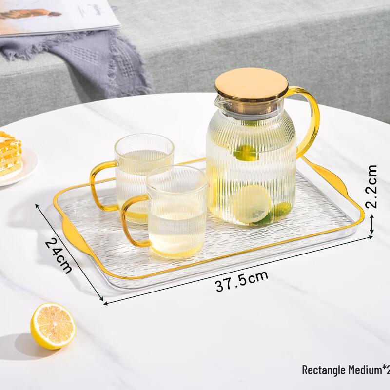 This elegant light luxury serving tray, crafted in a Japanese style, is perfect for home dining. Made from durable plastic, its rectangular design is ideal for holding tea cups and water cups. It features a distinctive glacier pattern with a sophisticated gold edge, adding a touch of elegance to your table.