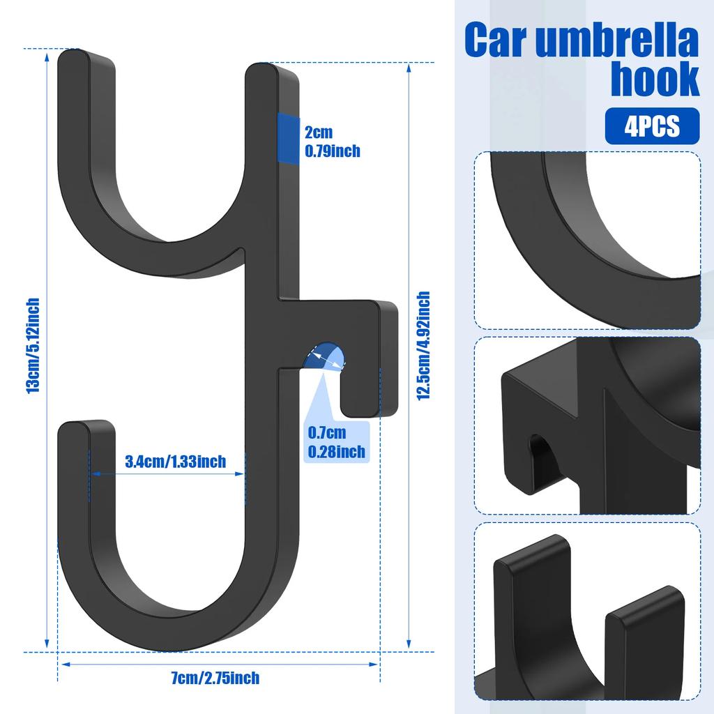 Easy Access for Rainy Days : On rainy days , you don't need to fumble for the umbrella repeatedly inside the car. Install the hook in a convenient area near the car door , and you can quickly take the umbrella when opening the door , greatly improving convenience