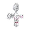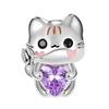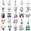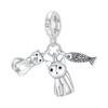 925 Silver Cat Charm Fish Pendant DIY Bracelet Jewelry Gift for Women Fashion Pet Lover Accessories