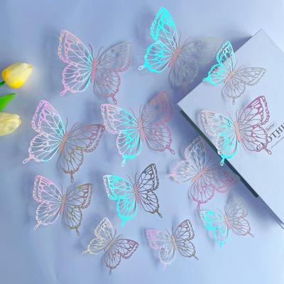 12 יח'/סט מדבקת פרפר חלול צבעוני עשה זאת בעצמך נייר פרפר תלת מימדי קישוט קיר 3 גדלים קישוטי פרפר סימולציה מעודנים