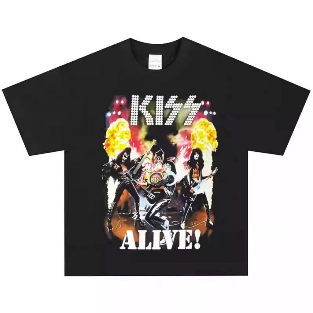 2025 Kiss Alive T-shirt, A Rock Band, American Retro Street Hip-hop, Short-sleeved Vintage Trendy, High-quality Luxury Brand