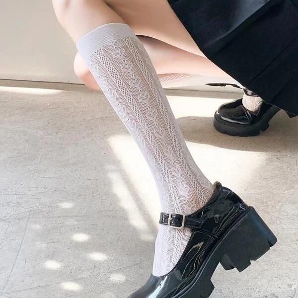 Japanese Lolita Lolita Socks Women's JK Calf Ladies Ring Lace Socks Summer Thin Hollow Mesh Medium Tube Mesh