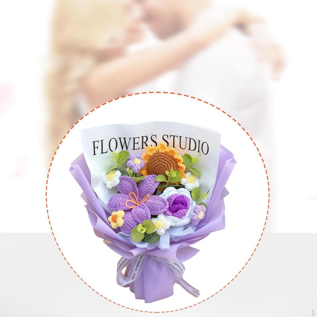Completed Crochet Flowers Bouquet Artificial Valentine's Day Gifts Eternal Blessing for