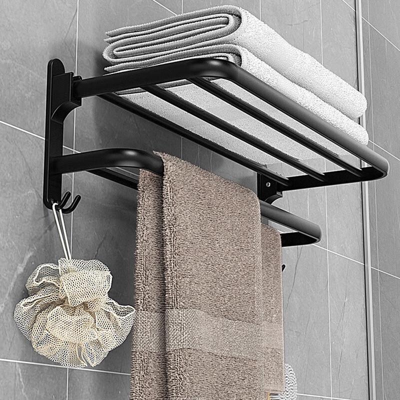 This versatile space aluminum towel rack is designed for modern bathrooms. Featuring a punch-free, wall-mounted installation, it provides convenient storage for towels and other items without damaging walls. Its durable construction ensures long-lasting use.
