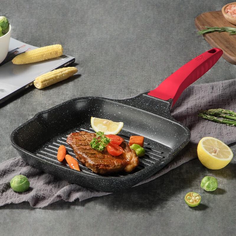 Experience superior cooking with the Chui Da Huang 24cm Non-Stick Ribbed Steak Frying Pan. Crafted from durable aluminum alloy with a healthy Maifan stone coating, this pan ensures effortless food release and easy cleanup. Its ribbed design is perfect for searing steaks, grilling vegetables, or making pancakes, giving your food beautiful char lines. Compatible with gas, induction, and ceramic hobs, it's a versatile addition to any kitchen. Designed without a lid for open frying and grilling.