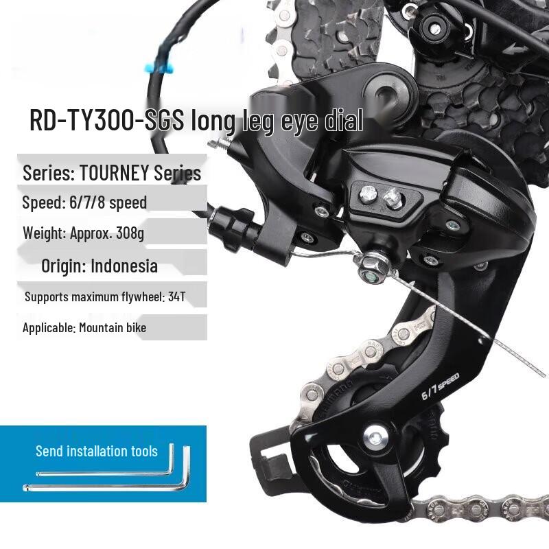 A reliable variable speed bicycle rear derailleur featuring a long cage design for smooth and precise gear changes. Ideal for various bike types, this TY300 model ensures consistent performance. Comes with a 3/5mm wrench for convenient installation.