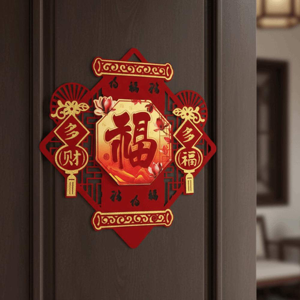 Chinese Style 3D Fu Character Door Sticker Traditional Flocked Fortune Character Thickened Blessing Lucky Word Decal