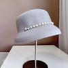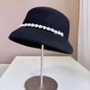 Delicate and elegant French small fragrance lampshade hat Fashion shining pearl chain basin hat women's banquet top hat