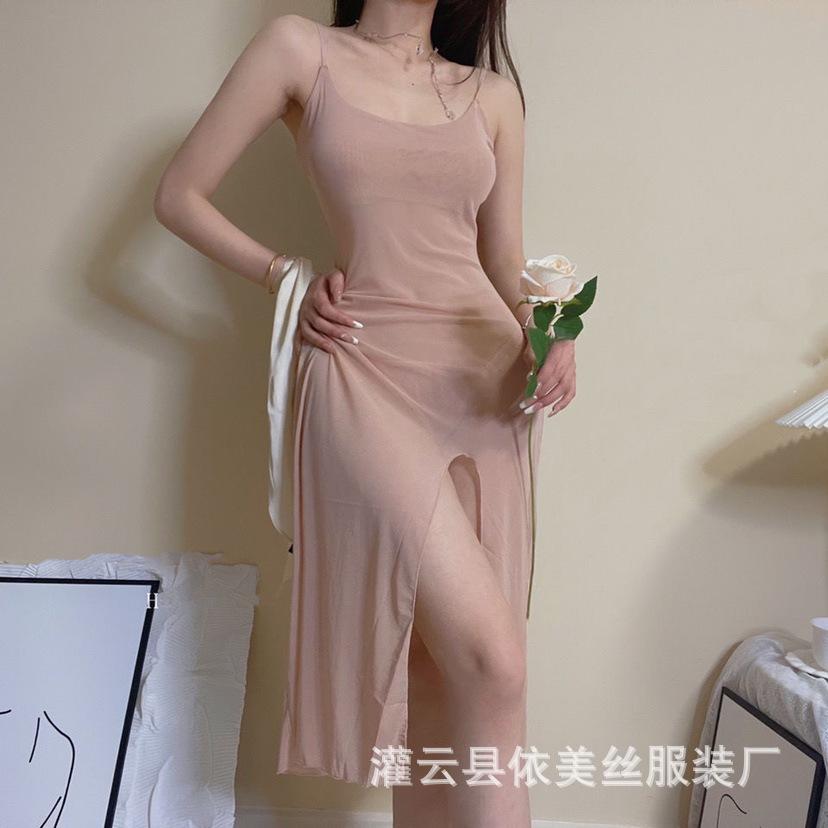 Sex underwear women's mesh transparent long dress pure desire temptation free split suspender dress