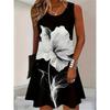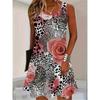 Red Rose Flower Print Dress Summer Women Fashion Sleeveless Loose Mini Dress Casual O-Neck Pocketless Plus Size Dresses