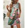 Women's Summer Sleeveless Floral Print Dress Casual Pocketless Plus Size Fashionable Loose Breathable Dress