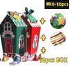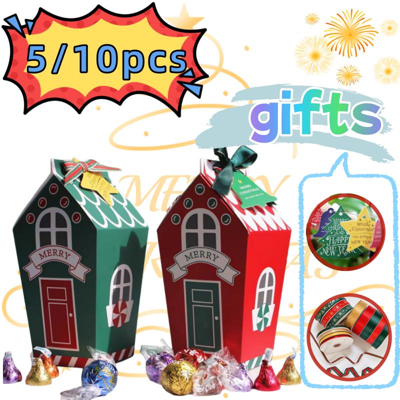 5/10Pcs Christmas Kraft Paper Gift Bags Sweets Candy Box Food Cookies Packing Xmas with Ribbons Cards Package Party Decoration