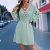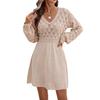 Women Autumn Sweater Dresses V-neck Crochet Knitted Long Pullovers Sweaters Dress
