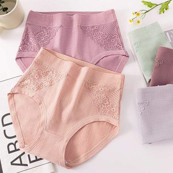 Women's Cotton Underwear Ladies Soft Stretch Tummy Control Panties High Waisted Lace Hipster Full Coverage Briefs