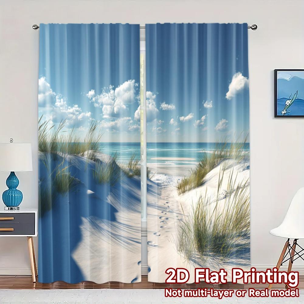 2pcs 2D FLAT PRINTING Curtains (Without Rod) Seaside Serenity Popular Curtains&Window Treatment Machine Washable Fabric