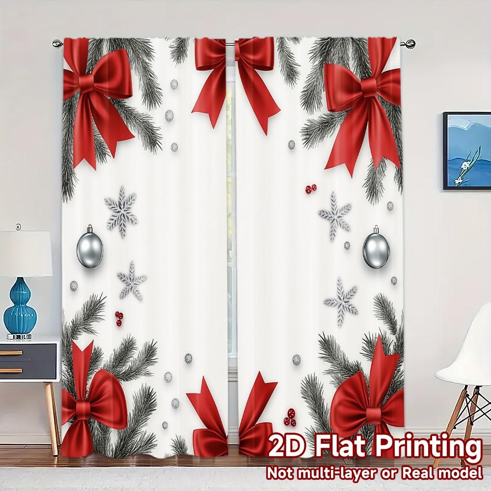 2pcs Curtains Christmas Bow Ornament Garland Snowflake (3) Light Filtering Popular Curtains Durable 100% Polyester Fabric
