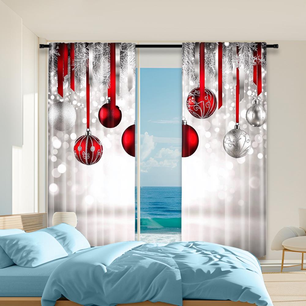 2Pcs Christmas Theme Window Curtain Digital Printed Window Drape For Festive Home Decor Rod Pocket Design For Easy