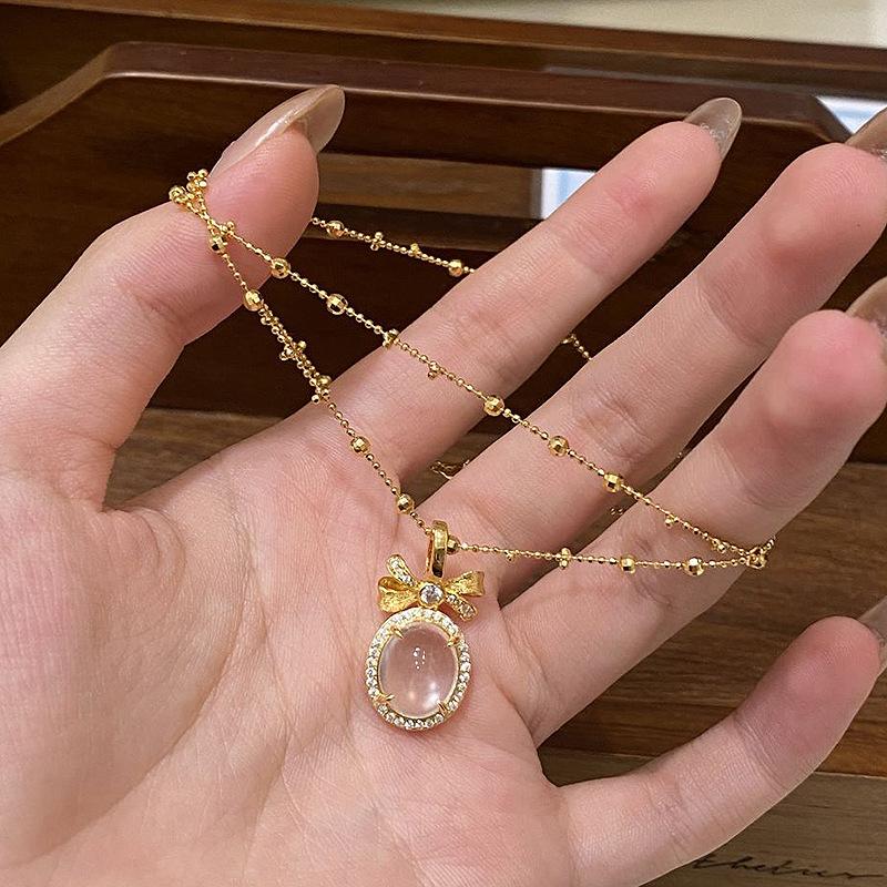 Natural chalcedony pendant exquisite brushed bowknot necklace for Women light luxury collarbone chain wedding gift
